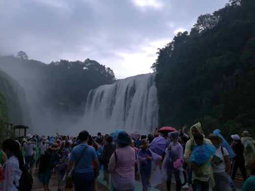 黄果树大瀑布位于贵州安顺镇宁布依族苗族自治县境内白水河上,连环密布的瀑布群而闻名于海内外,享有“中华第一瀑”之盛誉,也是世界上最阔大壮观的瀑布之一。奔腾的白水河在这里从悬崖绝壁上直泻而下,形成九级瀑布,落差共为105.4米,漩涡无数,声如雷鸣,响达千米。水雾经阳光折射,五彩缤纷,变幻无穷,气象万千,风景极为壮观。