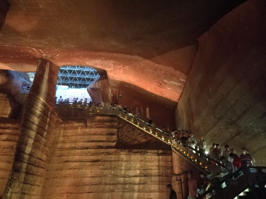进入景区后, 首先会来到一个放映厅,看关于石窟发现与挖掘的介绍。关于龙游石窟的来历众说纷纭,有说是地下金字塔,有说是西汉起储粮、战备用的仓库,甚至有人说是外星人留下的。当地的老人们则常说,这里以前是采石场,凿挖了地底的石头是为了修建龙游城墙……龙游石窟扑朔迷离的身世,也吸引了不少游客前来一探究竟。