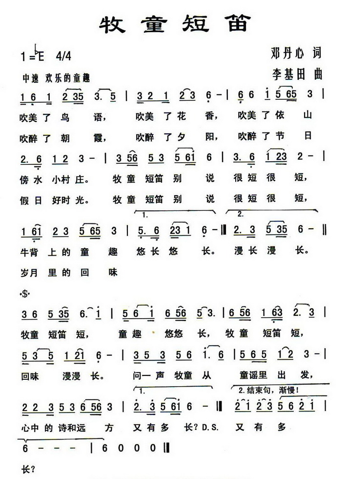 简谱《牧童短笛》