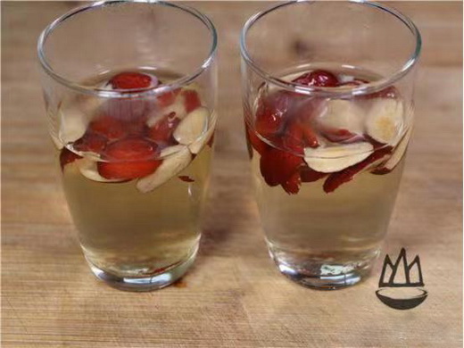 除了以上三种方法,还有一种用泡水看颜色的方法,也可以区分两种红枣。准备两个水杯,分别把硫磺枣和风干红枣撕碎放入两个不同的杯子。之后我们准备一些开水分别倒在两个杯子当中,用开水浸泡5分钟。